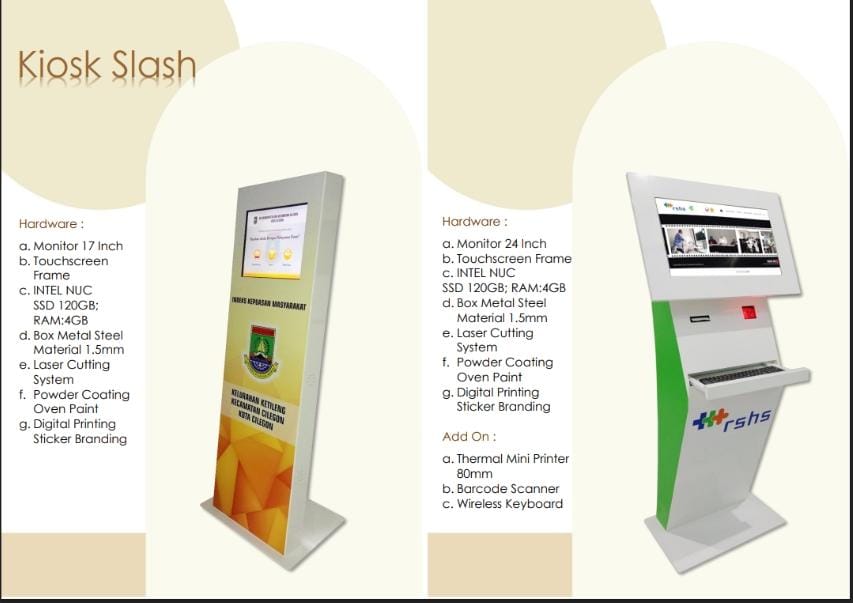 Kiosk Cyosce dengan berbagai desain digabungkan perangkat touchscreen atau layar sentuh dan software yang dibuat tim kami menghasilkan hampir semua yang dibutuhkan oleh anda. Baik berupa kiosk informasi, kiosk indeks kepuasan pelanggan dapat digunakan untuk keperluan perbankan, rumah sakit, transportasi, dinas pendapatan daerah, pemerintahan baik pusat maupun daerah.
